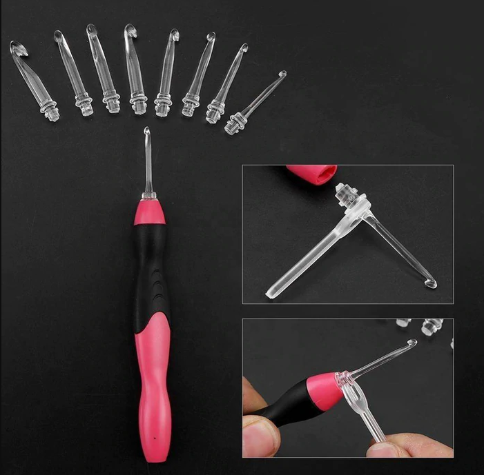 Con 9 ganchillos que son intercambiables y marcados individualmente para su comodidad, la herramienta con LED incluso viene con un estuche con cremallera gratis para un fácil almacenamiento.
